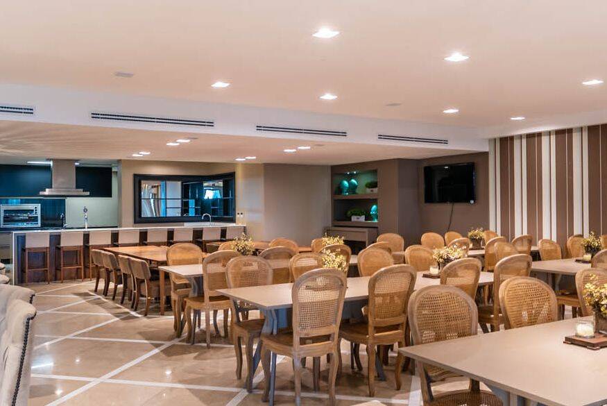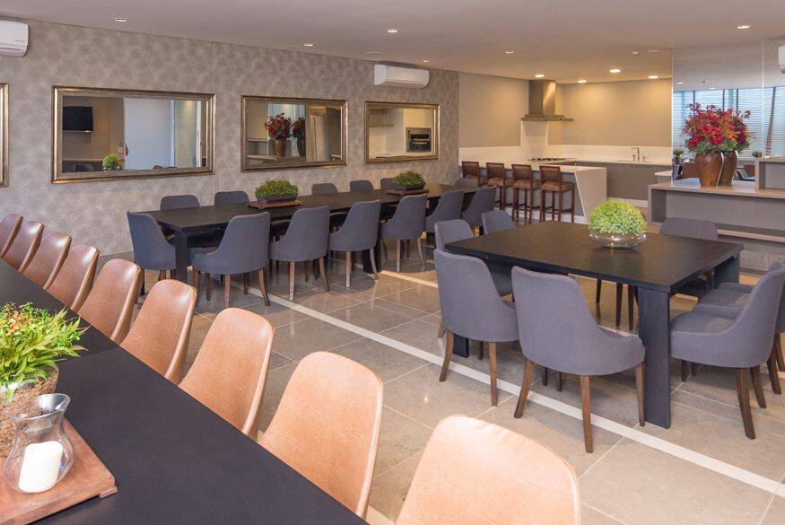 Piscina térmica, Academia, Sala de jogos, Playground, Spa, Sauna, Salão de festas, Lounge, Estúdio de pilates, Sala de games, Brinquedoteca, Elevador, Interfone, Piscina, Cinema, Quadra Poliesportiva