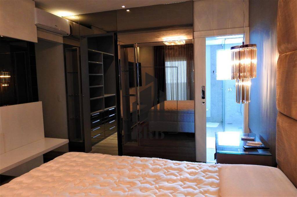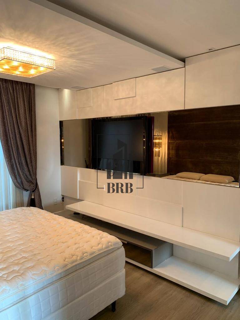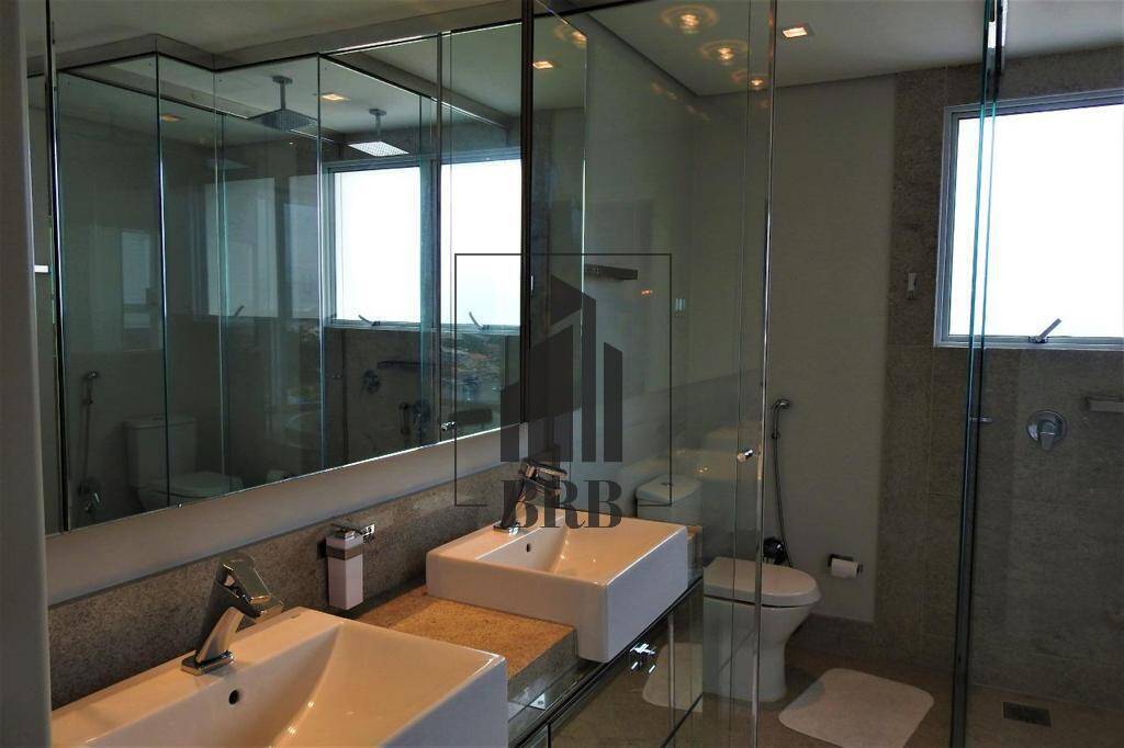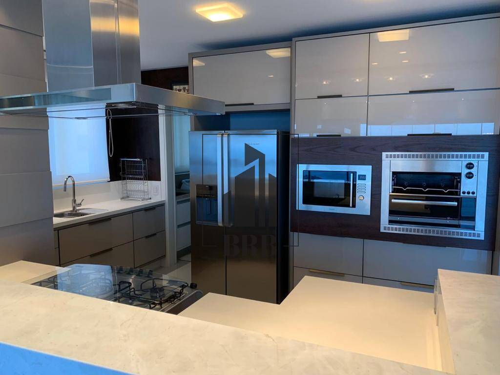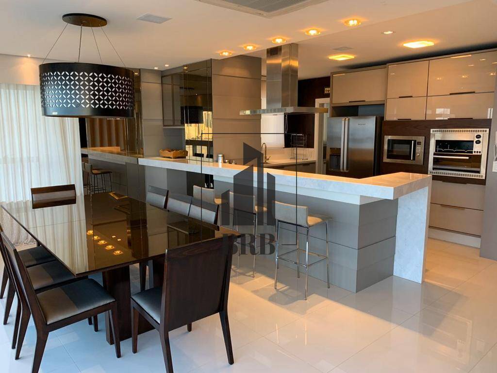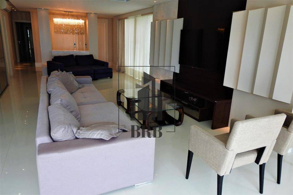 O Apartamento com 237m² todo climatizado é Mobiliado, Equipado e Decorado e é composto por 4 suítes, sendo 1 master com closet, mais 1 dependência 5 banheiros e 4 vagas e conta com: